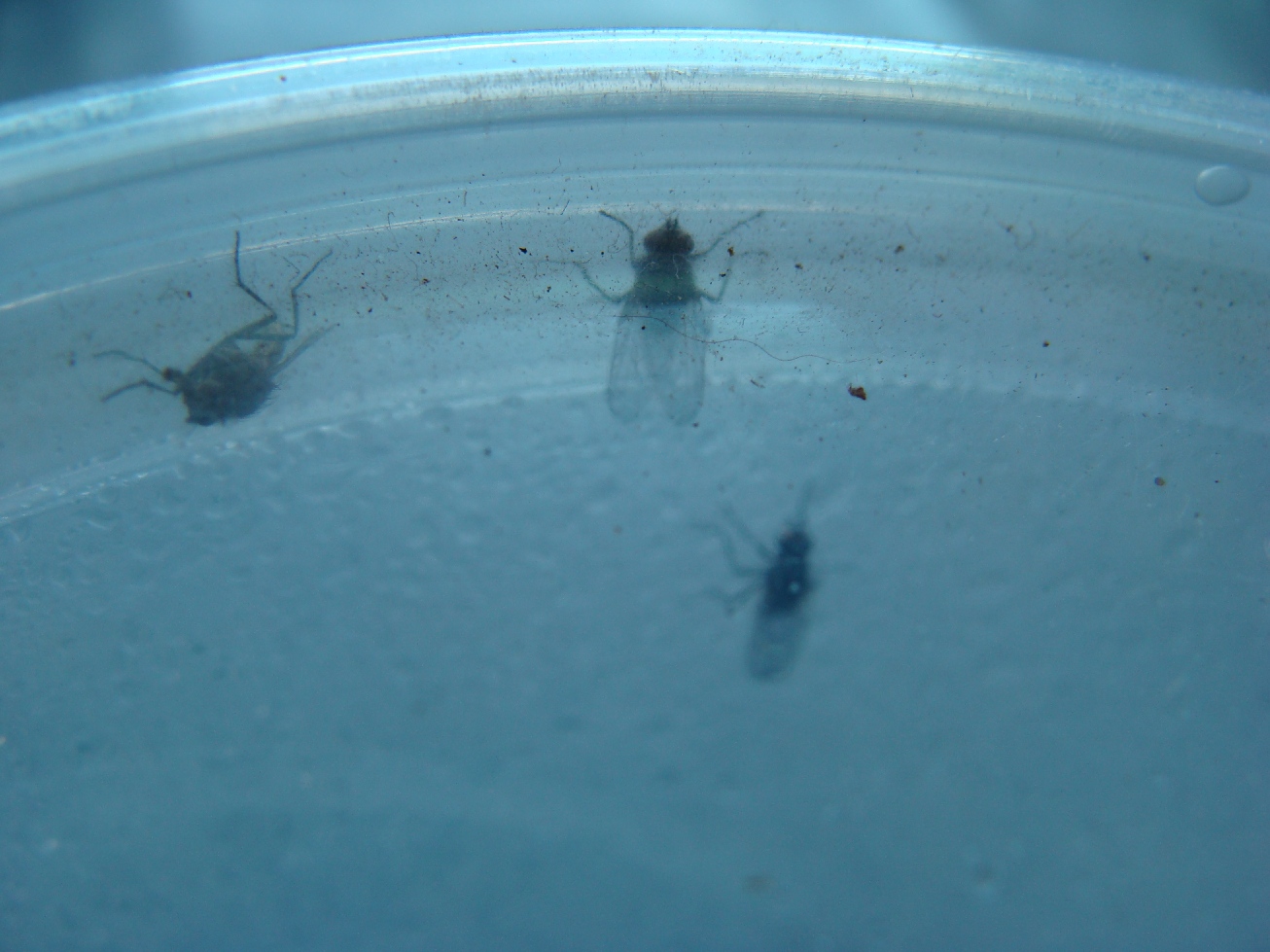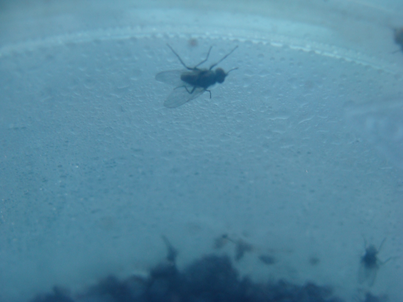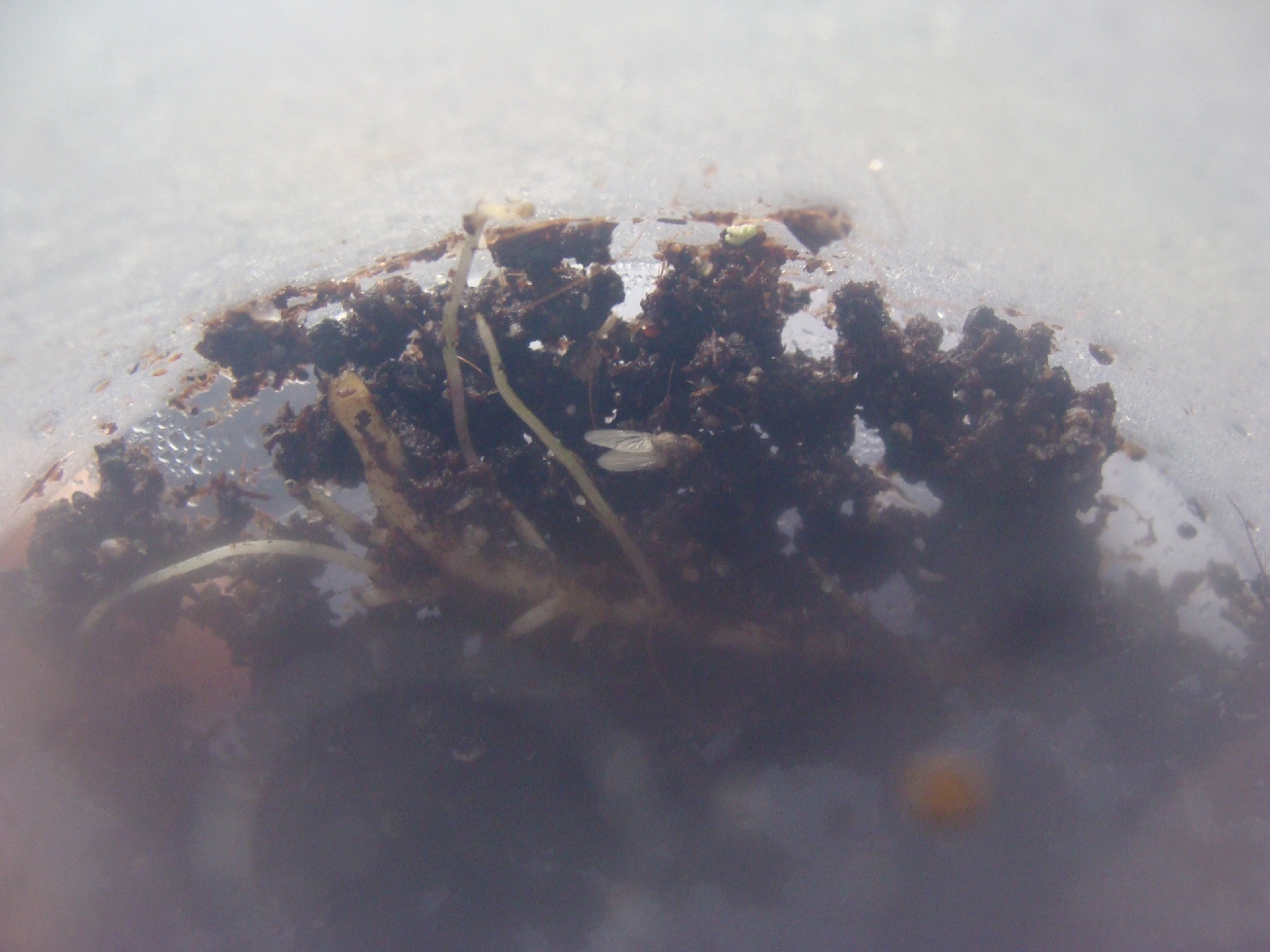 Szczątki roślinne wraz z żywą zawartością wsadziłam do pojemniczka z pokrywką i postanowiłam poczekać i zobaczyć, co się z tego wykluje. Myślałam, że były tam tylko trzy larwy, ale – jak się okazało po tygodniu – było tego aż siedem, większość wciąż siedziała w łodyżce i korzonku biednego groszku. Tak wygląda postać dorosła śmietki glebowej (śmietka kiełkówka też tam mogła być – te dwa gatunki są wielce do siebie podobne):